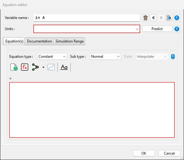 icon in the top menu. Now, you will see that the variables that we can edit in this model (i.e., A and in_A). If you click on one of them, a dialogue box opens. In this example, I clicked on the variable in_A.