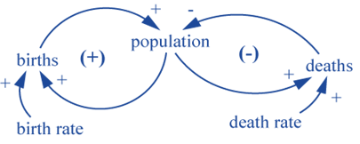 In this fourth exercise we are moving away from purely abstract (and simple) simulation models towards a real-world application. Specifically, we will parameterize a population model for Papua New Guinea. Below you find the concept of a very basic population model with one stock (i.e., the variable we are interested in), two flows and two auxiliary variables.